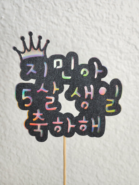 Mother-of Pearl Inspired Birthday Cake Topper in Korean