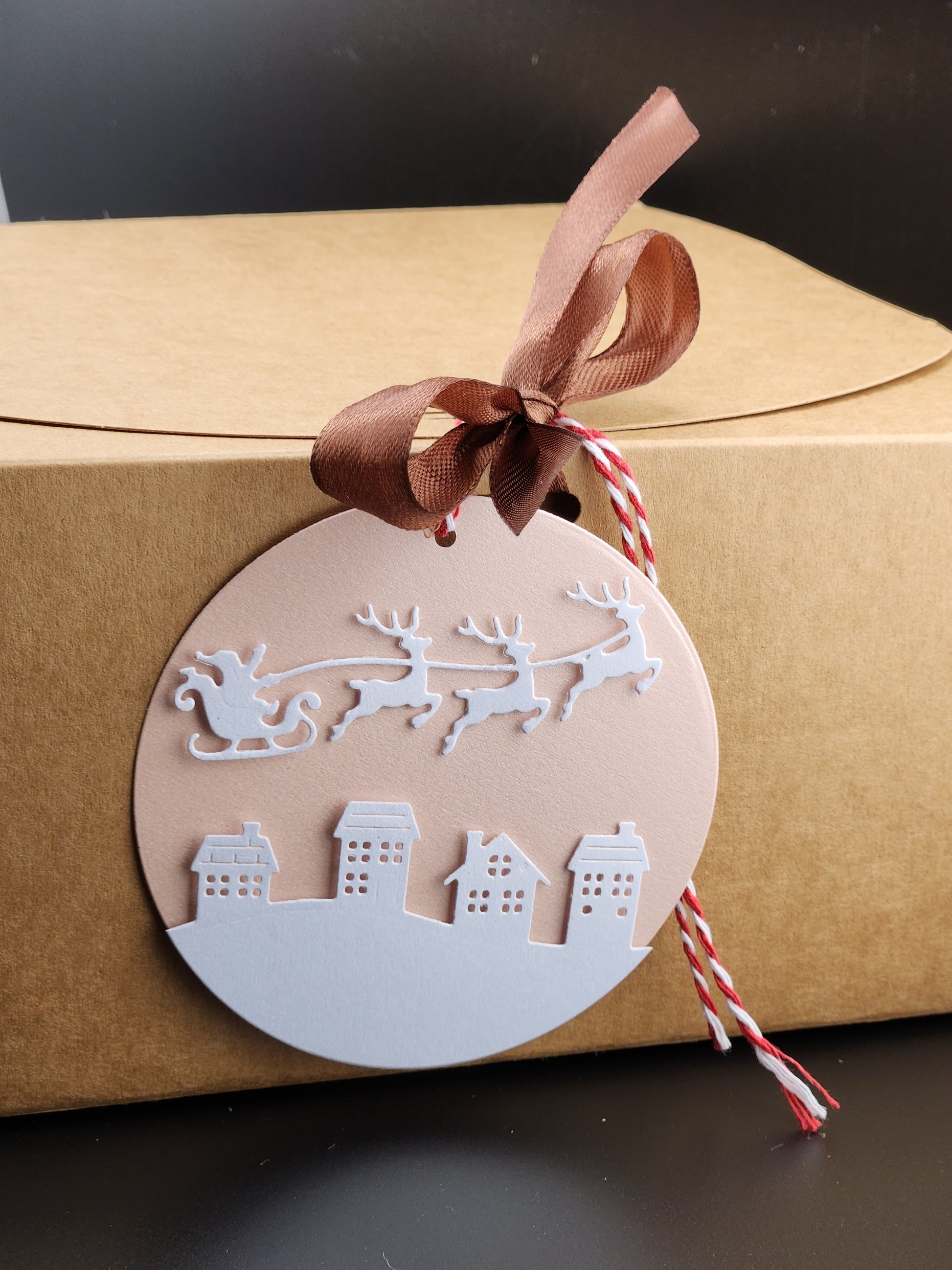 The tags will come with red and white twine.